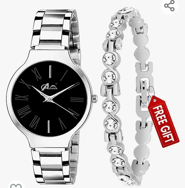Acnos Brand - A Branded Watch 4 Different Dial Black-Blue-Pink-White Stainless Steel Silver Band with Silver braclet and Watch for Women Watch for Girls