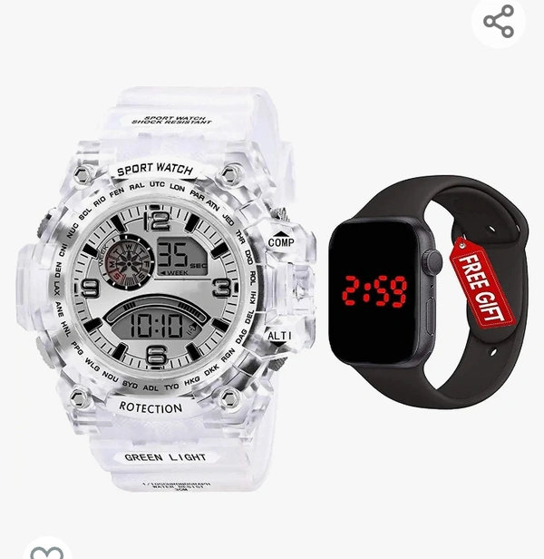 Acnos Brand - A Digital Watch with Square LED Shockproof Multi-Functional Automatic 5 Color Dial White Strap Waterproof Digital Sport