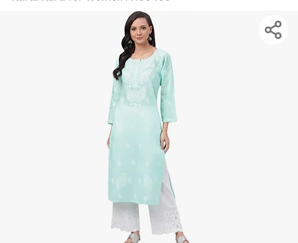 Ada Hand Embroidered Lucknowi Chikankari Cotton Kurta Kurti for Women A133488