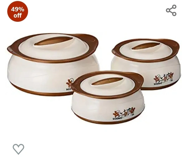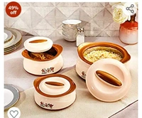 Amazon Brand - Solimo Chemical-Free Plastic and Stainless Steel Casserole (Brown Silver, 450/900/1450 ml) -Set of 3
