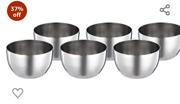 Amazon Brand - Solimo Sparkle Stainless Steel Bowl/Wati Set (6 pieces, 8cm dia), Silver