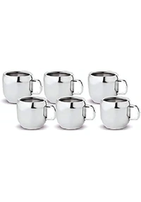 ATROCK Pack of 6 Stainless Steel Double Wall Royal Apple Tea & Coffee Cups| 100% Stainless Steel| Small Cute Cup Latest Stylish Design Cold Outside Hot Inside Apple Shape Set of 653%off