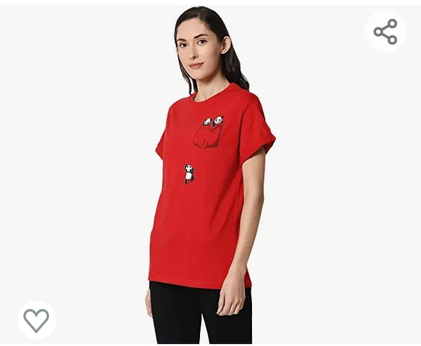 Bewakoof Women's Cotton Printed Climbing Pocket Panda Boyfriend Half Sleeve | Round Neck | Regular Fit T-Shirt/Tee