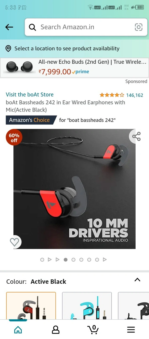 boAt Bassheads 242 in Ear Wired Earphones with Mic(Active Black)Amazon'sChoice