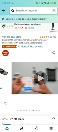 Boya BYM1 Omnidirectional Lavalier Condenser Microphone with 20ft Audio Cable (Black)#1 Best Seller in Musical Instruments65%off