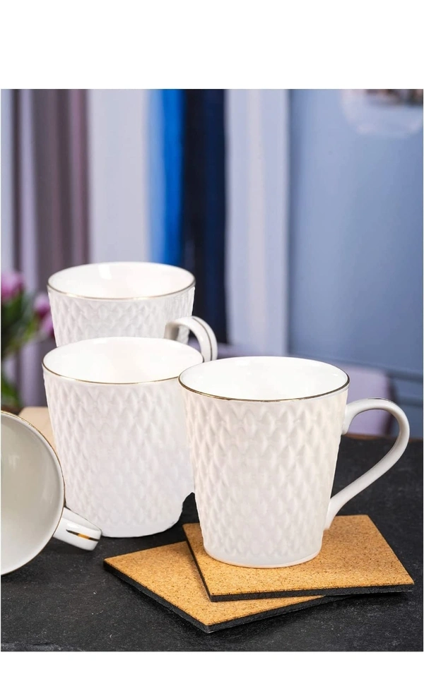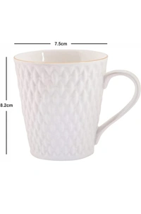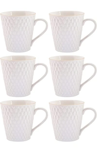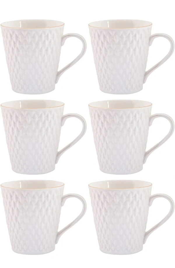 E-EZRA Tableware Set of 6 White Floral Textured Porcelain Glossy Cups (Pack of 6 )21%off