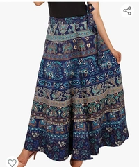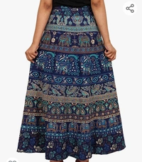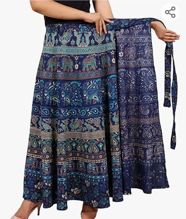 EIRSON Cotton Women's Long Wrap Around Skirt Jaipuri Printed (Free Size Upto 44-XXL) (Blue)