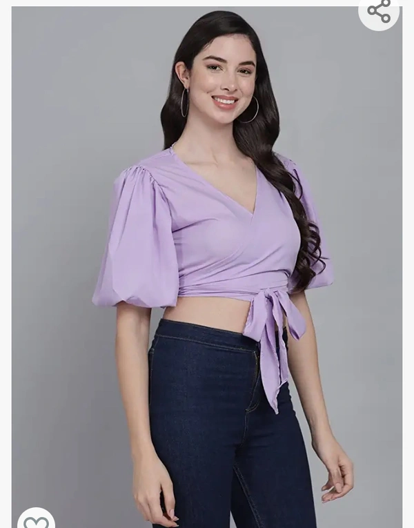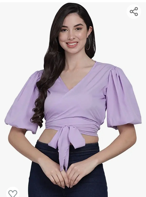 FUNDAY FASHION Women's Regular Fit Top/Front Tie Knot/Wrap Top Front Wrap with Tie up Waist