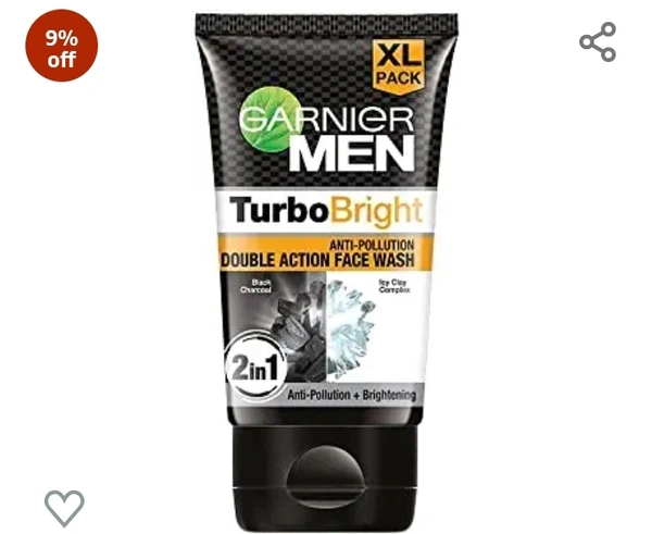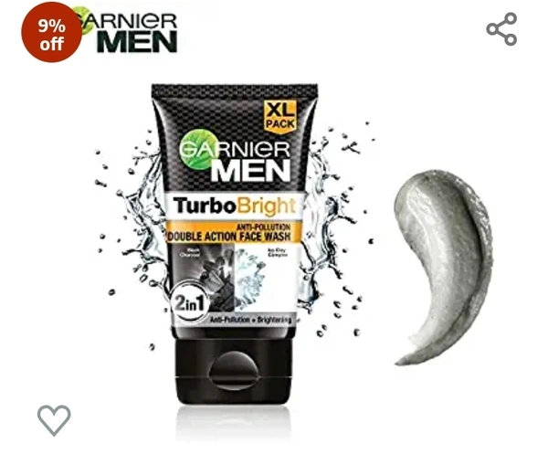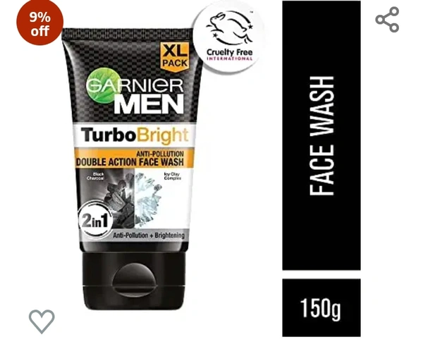 Garnier Men, Face Wash, Brightening & Anti-Pollution, TurboBright Double Action, 150 g