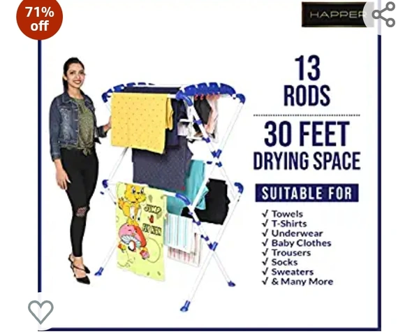 Happer Premium Plastic, Alloy Steel Extra Large Cloth Drying Stand, Sumo (White & Blue)71%off