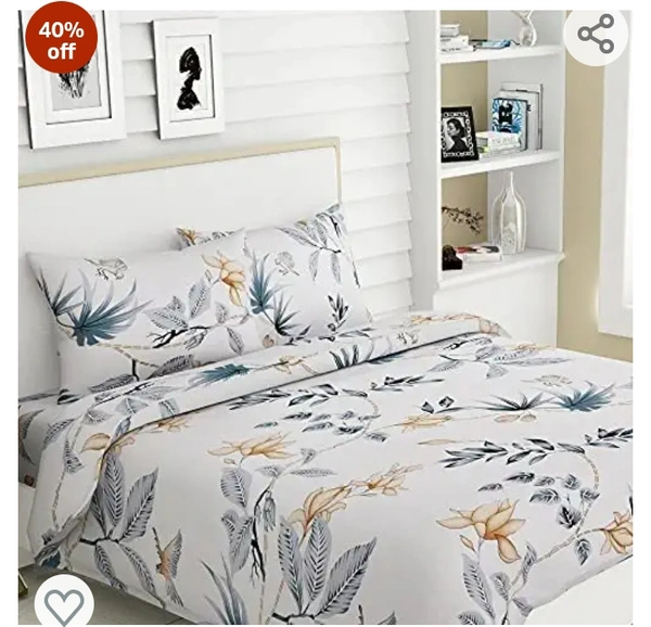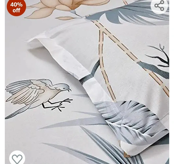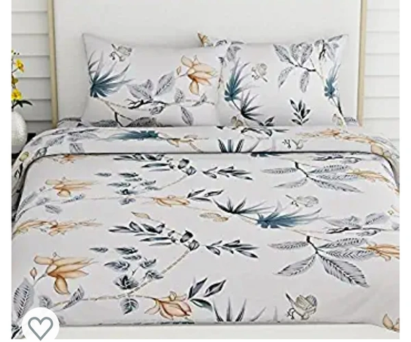 haus & kinder Sparrow Floral Art, 100% Cotton Bedsheet with 2 Pillow Covers, 186 TC, Double Size (Grey)