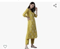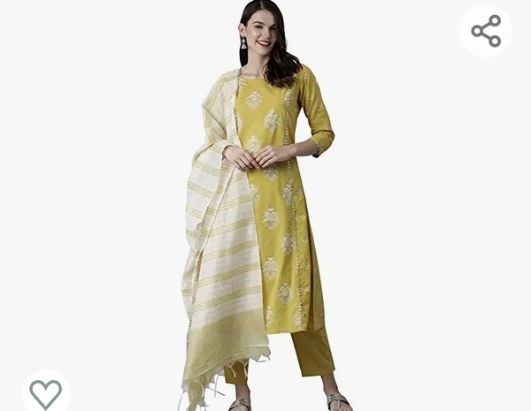 INDO ERA Women's Printed Pure Cotton Straight Kurta Trouser With Dupatta Set(RRRRR2042)