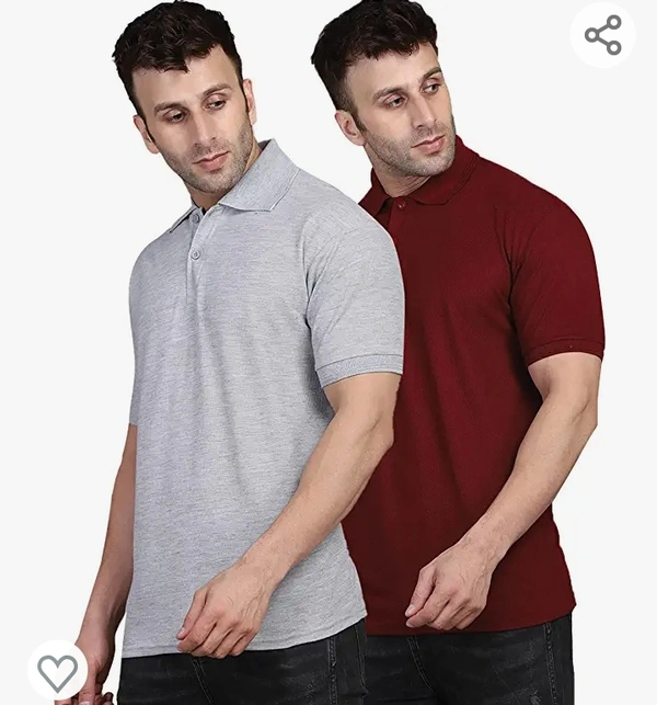 INKKR Men's Combo Polo Neck Cotton Blend Solid T-Shirt (Pack of 2)