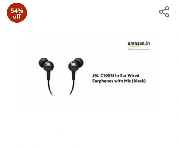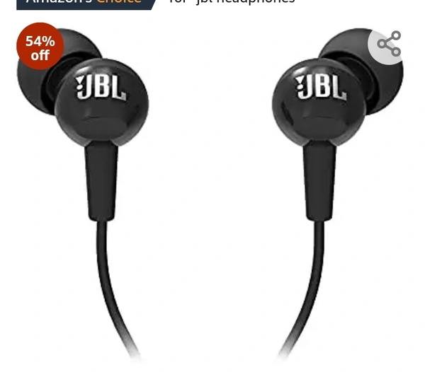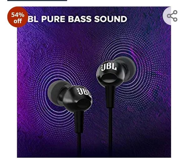 JBL C100SI Wired In Ear Headphones with Mic, JBL Pure Bass Sound, One Button Multi-function Remote, Angled Buds for Comfort fit (Black)Amazon'sChoicefor