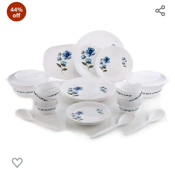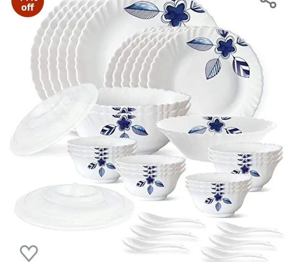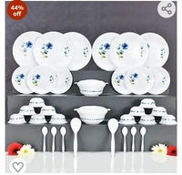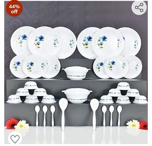 JENVAN Unbreakable Plastic Light Weight Dinner Set of 36 pcs 6 Full Plates, 6 Quarter Plates, 12 Veg Bowls, 2 Serving Bowl with 2 lids. 2 Serving Spoons and 6 Spoons44%off