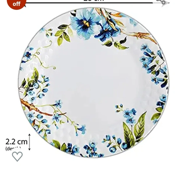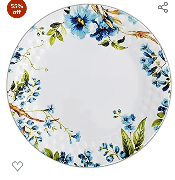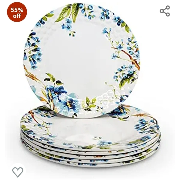 Konvio Melamine Dinner Plates Set of 6, White Floral Design Unbreakable Plates (White, 11 inches) - 6 Pieces55%off