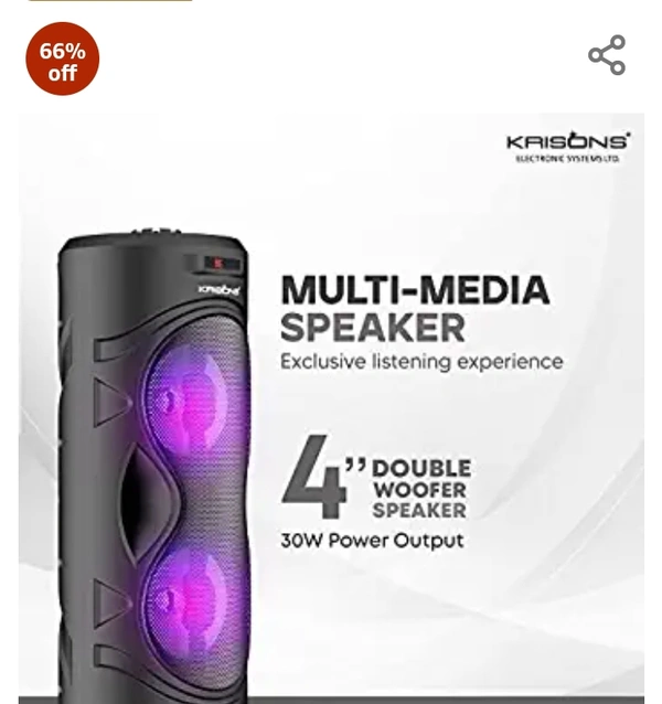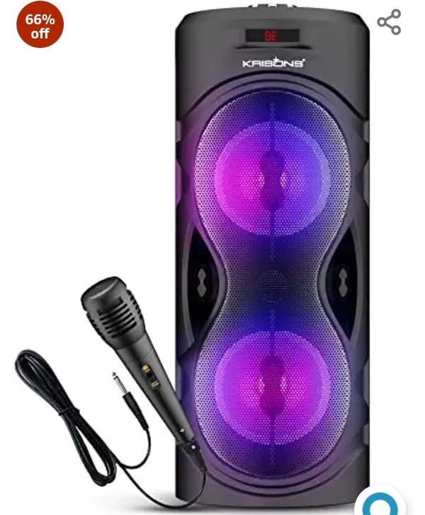 KRISONS Cylender 4” Double Woofer 30W Multi-Media Bluetooth Party Speaker with Wired Mic for Karaoke, RGB Lights, USB, SD Card and FM Radio – Black#1 Best Seller in Tower