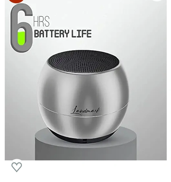 LANDMARK LM BT1045 Smallest Wireless Bluetooth Speaker with Powerful Bass Sound & in-Built Mic with Voice Assistance - Silver