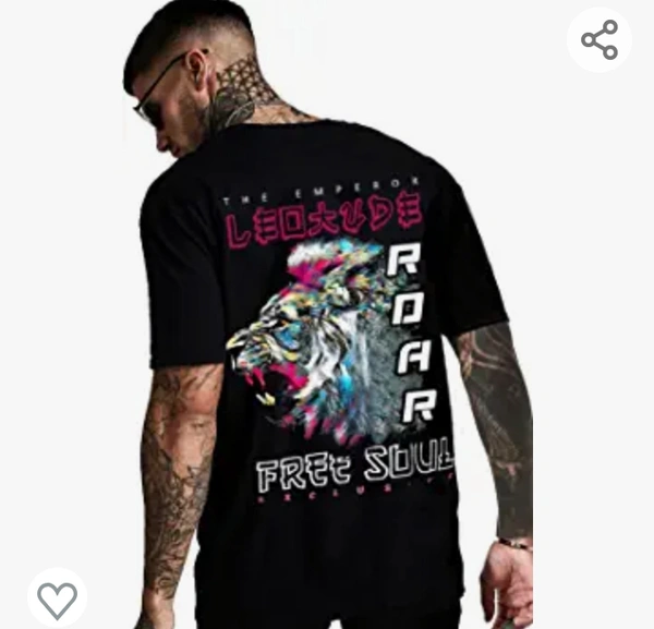 104LEOTUDE Cotton Blend Half Sleeve Back Print Oversized T-Shirts for Men