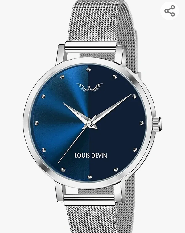 LOUIS DEVIN Analogue Women's Watch(Blue Dial Silver Colored Strap)-LD-L144-BLU-CH