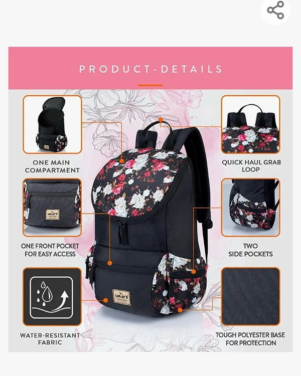 Lunar's Monica - 1 Compartment Water Resistant Stylish Fashion Ladies Backpack Girls School Bag Student Backpack Women Trendy Travel BagAmazon'sChoice