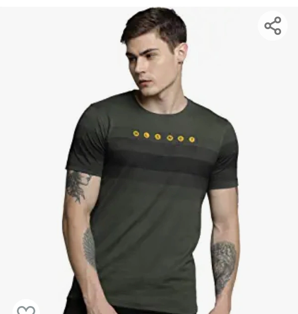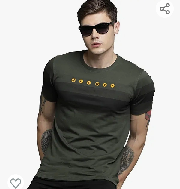 Maniac Men's Printed Halfsleeve Round Neck Olive Cotton Tshirt
