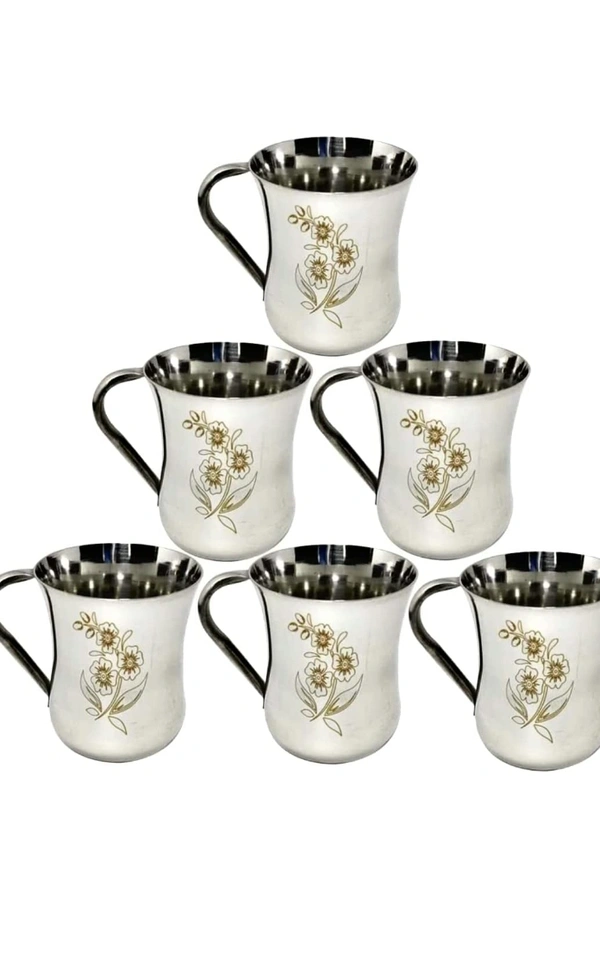 Mesofy™️ Pack of 6 Stainless Steel Tea/Coffee Cup Set of 6 ( Laser Finished ,200 ML 300 ML , Stainless Steel , Dishwasher Safe (200 ml, 6)52%off