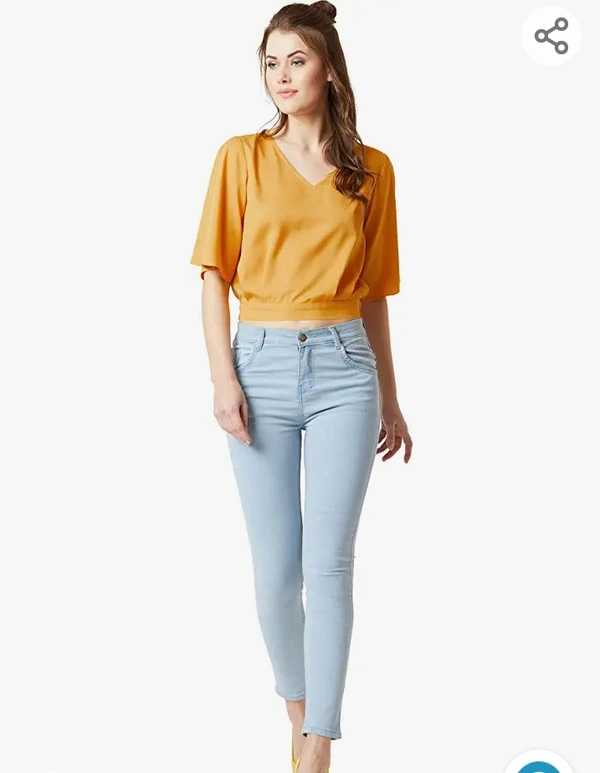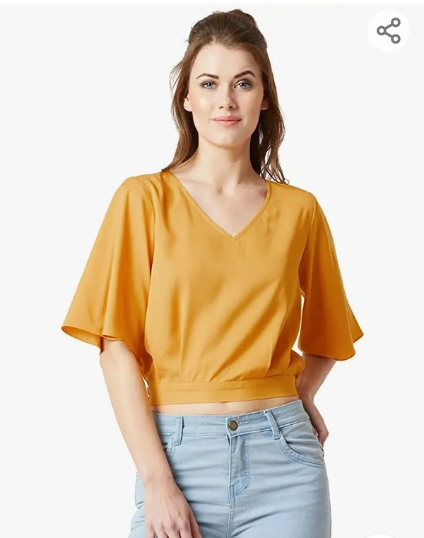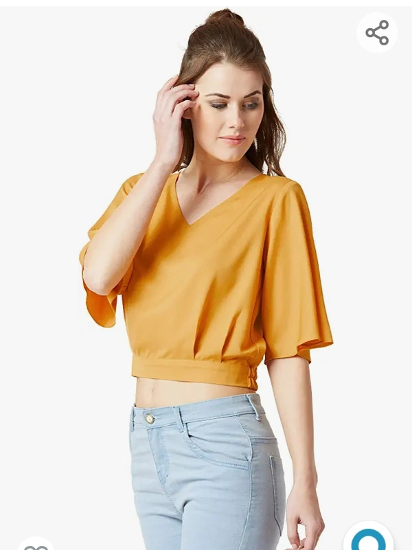 Miss Chase Women's Mustard Yellow V-Neck Crop Top