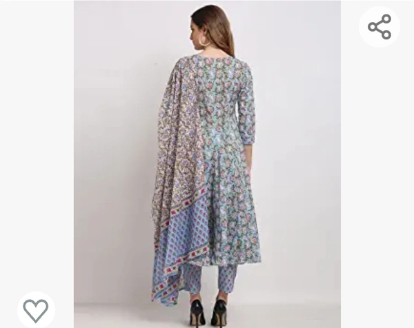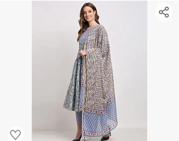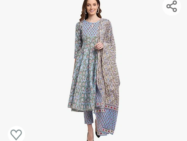 Monira Women's Pure Cambric Cotton Jaipuri Floral Printed Anarkali Kurta Set With Dupatta (Ready To Wear; Blue)