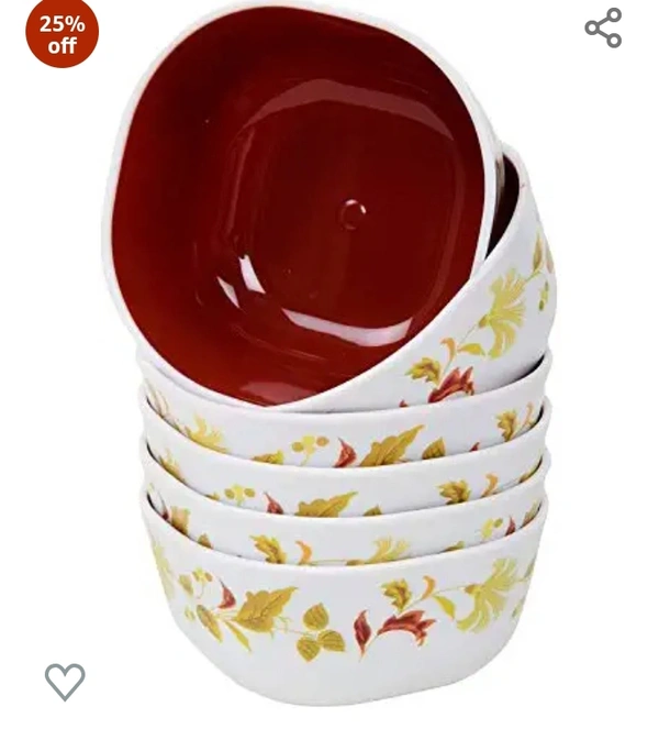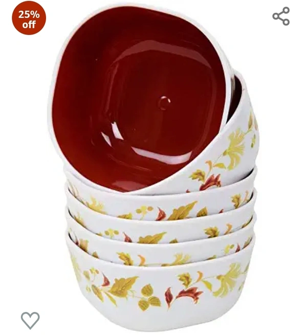 Nayasa Plastic Floral Soup Bowl - 200 ml, 6 Piece, Brown, (NP3471)