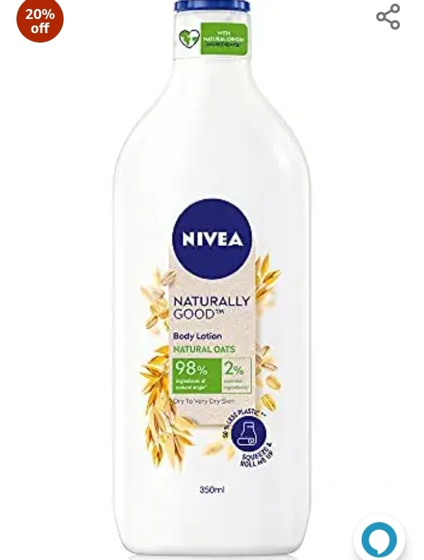 Nivea Naturally Good, Natural Oats Body Lotion, For Dry to Very Dry Skin, No Parabens, 98% Natural Origin Ingredients, 350 ml