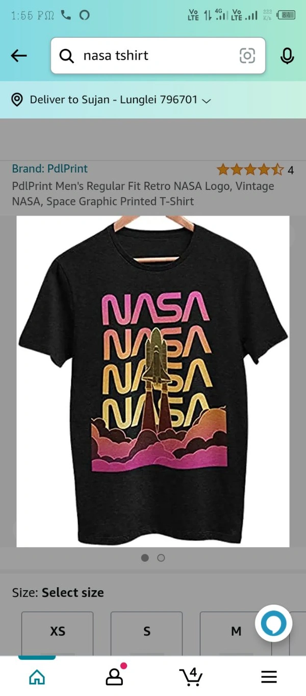 PdlPrint Men's Regular Fit Retro NASA Logo, Vintage NASA, Space Graphic Printed T-Shirt