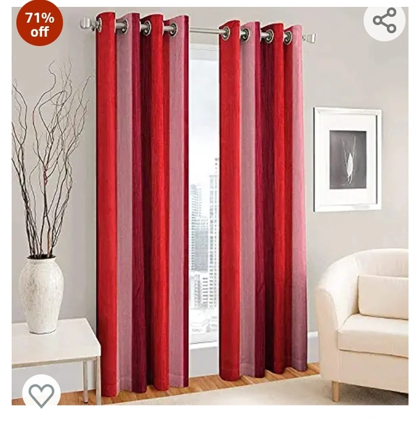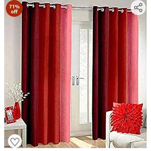 Polartains 2 Piece Eyelet Striped (Patta) Polyester Long Door Curtains Red (Window) 5 Feet