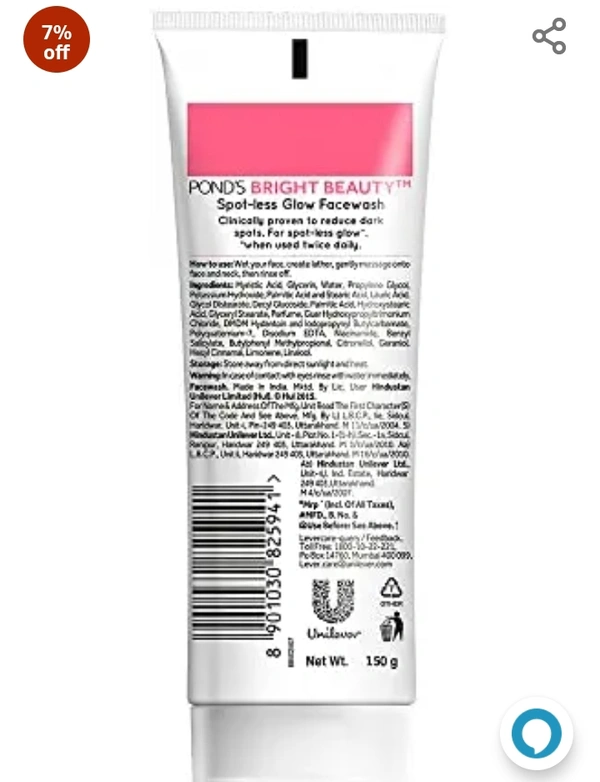 POND'S Bright Beauty Spot-less Glow Face Wash With Vitamins, Removes Dead Skin Cells & Dark Spots, Double Brightness Action, All Skin Types, 150g
