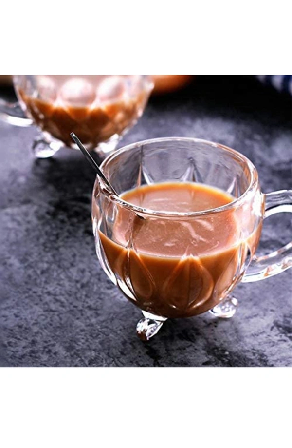 PrimeWorld Elegant Tea Coffee 230 ml Cup Set of 6 pcs , Crystal Espresso Mug, Clear Toughened Glass Mug with Handle for Cappuccino, Milk, Latte hot/Cold Drinks etc54%off