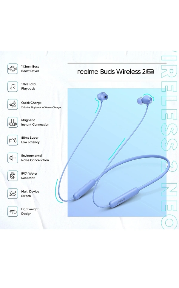 realme Buds Wireless 2 Neo Bluetooth in Ear Earphones with Mic (Blue)