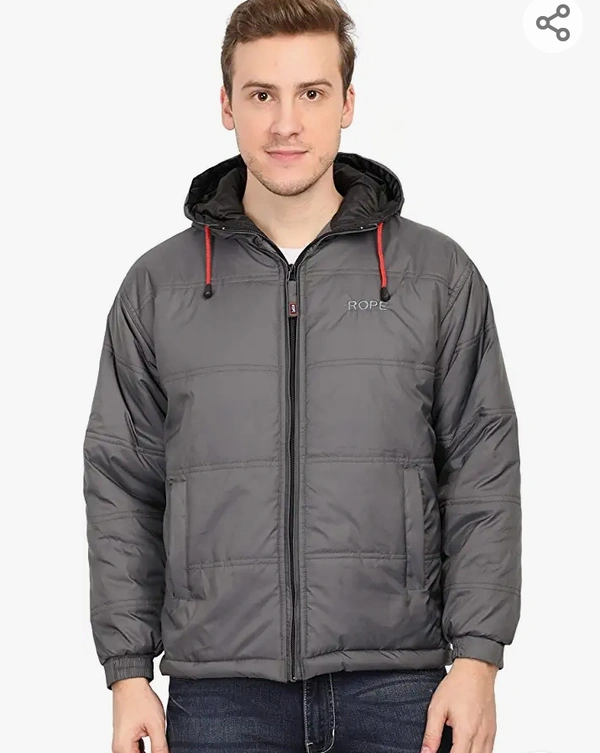 Rope Full Sleeve Grey Solid Polyester Men's Casual Bomber Jacket With Hood