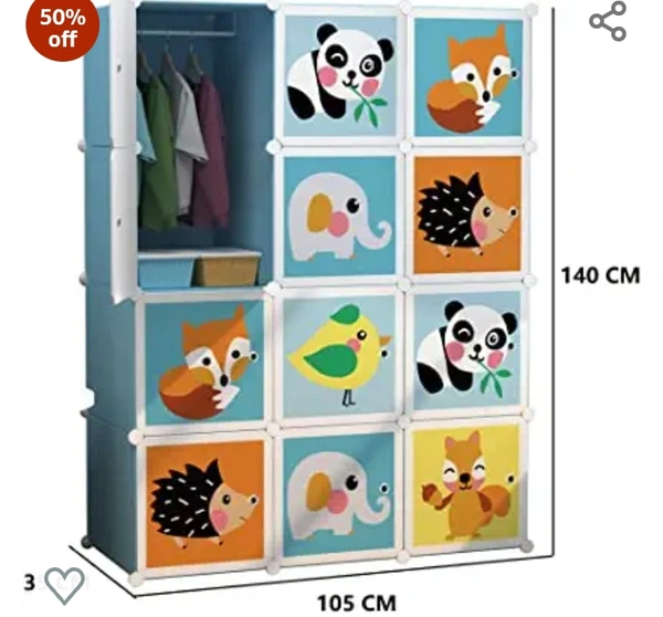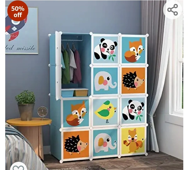 R.K. International Kid's Plastic Wardrobe Cabinet 12 Door Storage Organizer Almirah Rack Shelf for Clothes Living Room Bedroom, (Blue)50%off