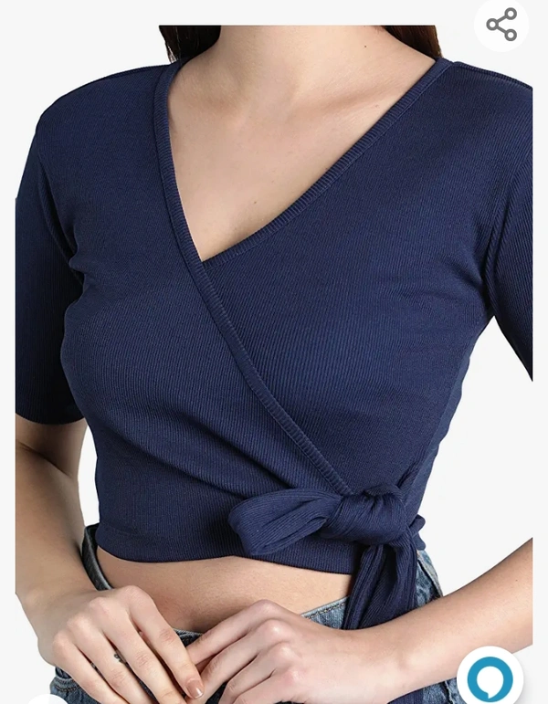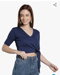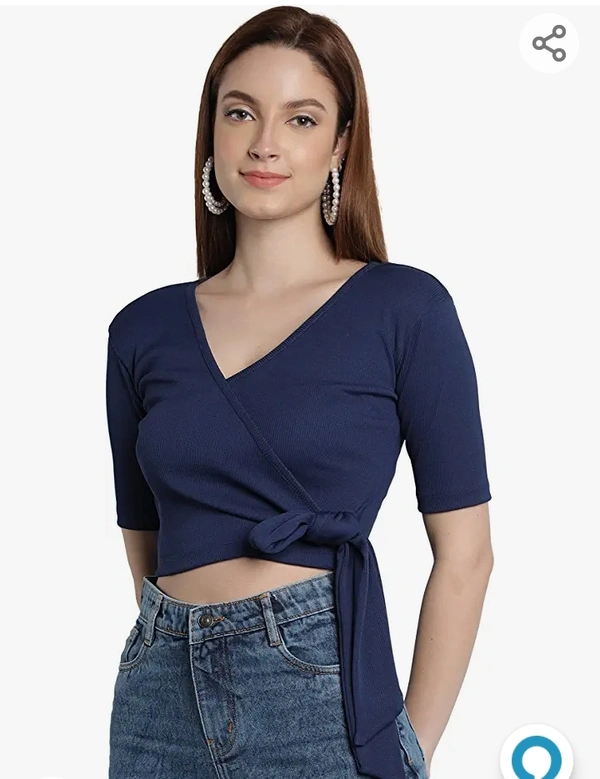 SAAVA Women's Cotton Lycra V-Neck Top, Overlap Stylish Top with Half Sleeves Crop Top for Party