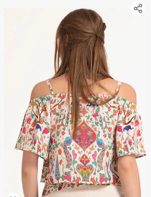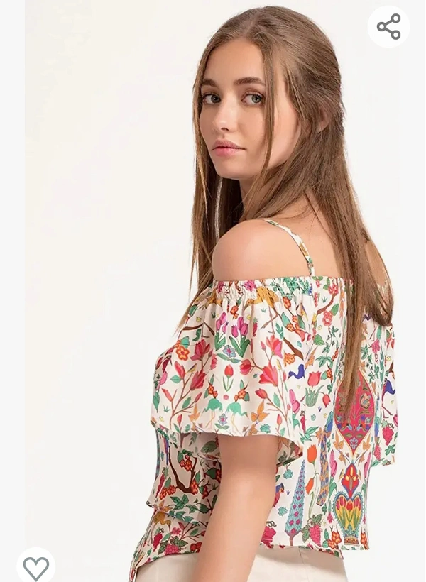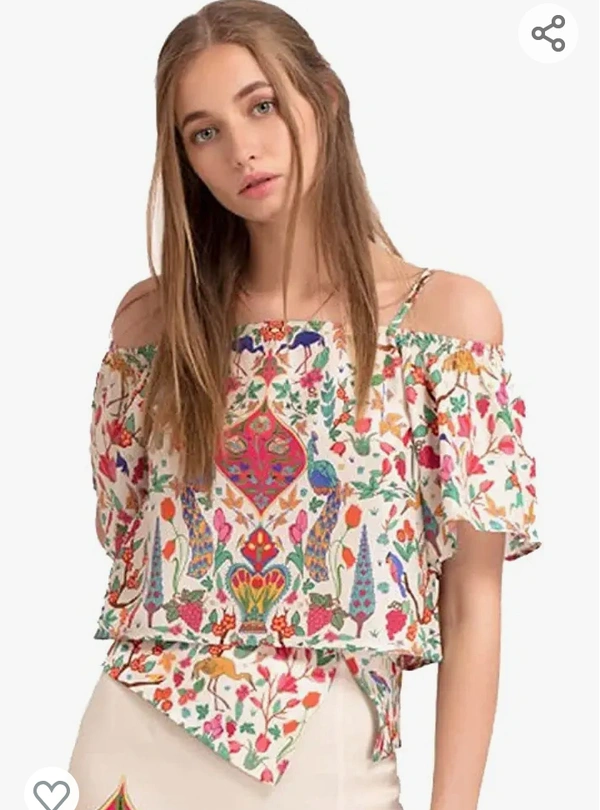 Shaye Women's Satin Off Shoulder Top with Floral Print | Adjustable Strap | Short Sleeves | Regular Fit | for Every Occasion | Cream