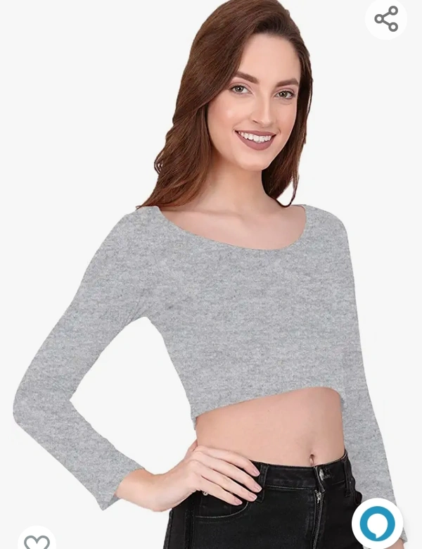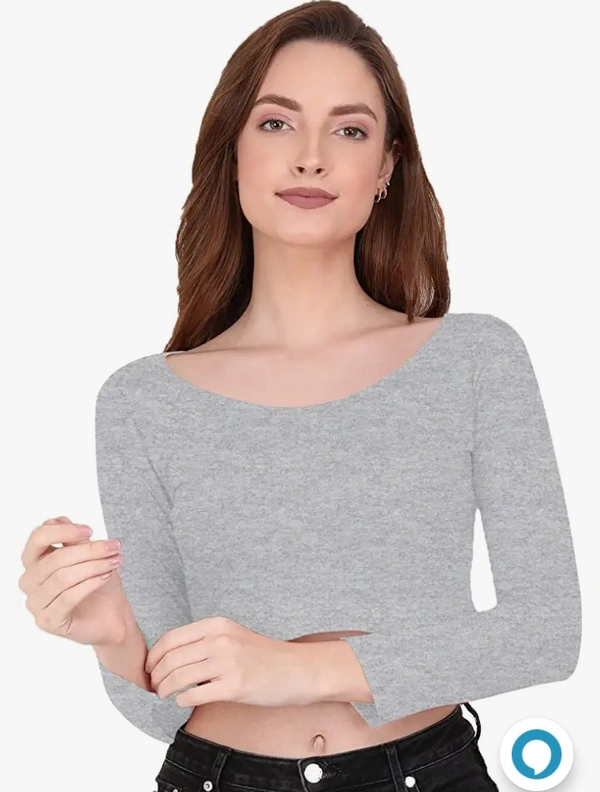 The Blazze 1059 Women's Basic Sexy Solid Scoop Neck Slim Fit Full Sleeve Crop Top T-Shirt For Women