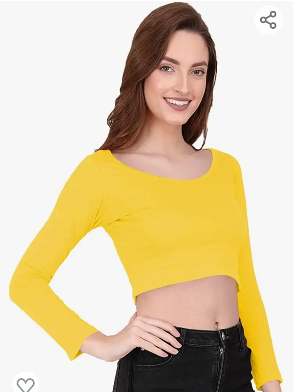 The Blazze 1059 Women's Basic Sexy Solid Scoop Neck Slim Fit Full Sleeve Crop Top T-Shirt For Women