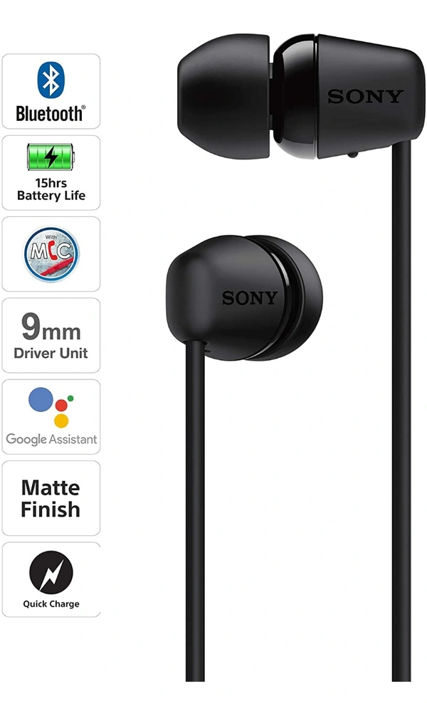 Sony WI-C200 Wireless Headphones with 15 Hrs Battery Life, Quick Charge, Magnetic Earbuds for Tangle Free Carrying, BT ver 5.0,Work from home, In-Ear Bluetooth Headset with mic for phone calls (Black)50%off