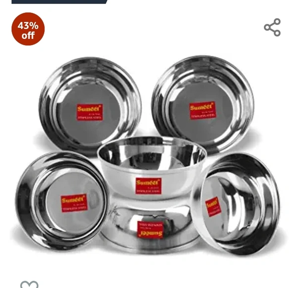 Sumeet Stainless Steel Solid Bowl Set/Wati Set - 200 ml, 6 Pcs, Silver