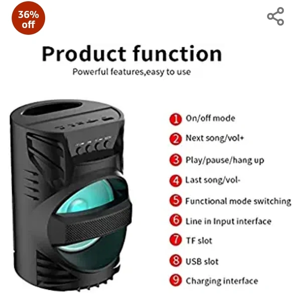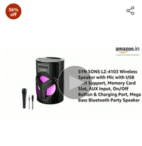 SYN SONS Bluetooth Speaker with Mic LZ-4104 USB Port Support, Memory Card Slot, AUX Input, On/Off Button & Charging Port, Mega Bass Bluetooth Party Speaker
