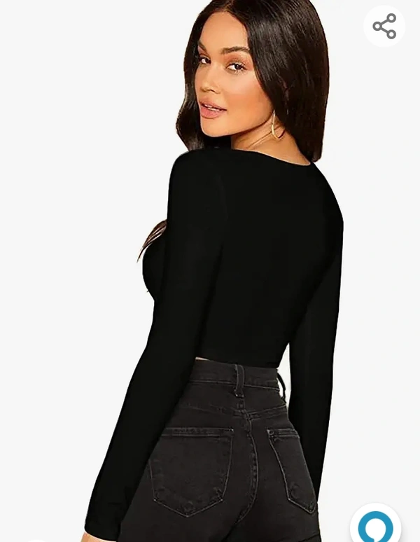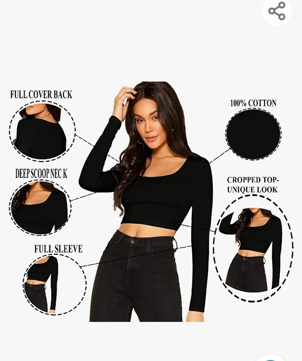 The Blazze 1059 Women's Basic Sexy Solid Scoop Neck Slim Fit Full Sleeve Crop Top T-Shirt For Women