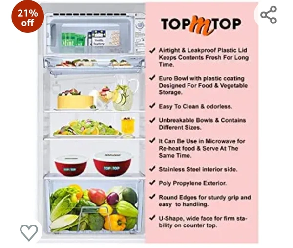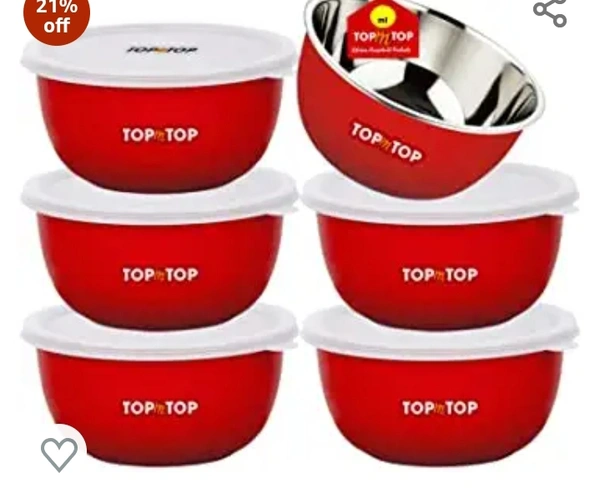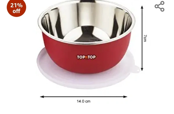 TOPMTOP Microwave Bowl, Bowl Sets, Bowl, Serving Bowl, Stainless Steel Serving Bowls, Microwave Oven Bowl, Kitchen Accessories Items, Kitchen Storage,(Each Bowl 450ml) Pack of 6, Red