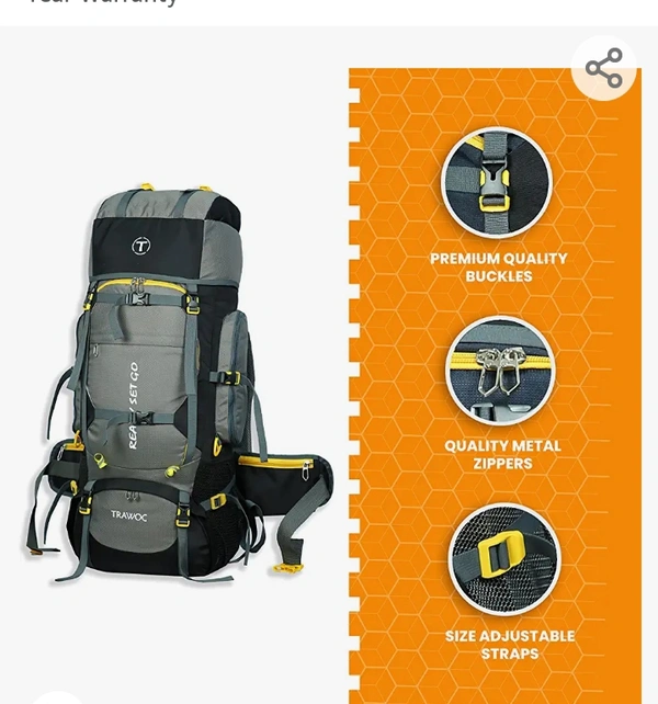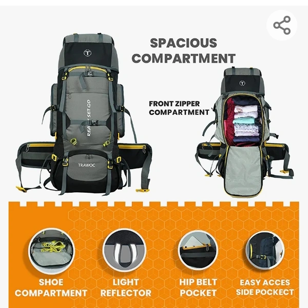 TRAWOC 80L Travel Backpack for Outdoor Sport Camp Hiking Trekking Bag Camping Rucksack HK007 (Grey) 1 Year Warranty