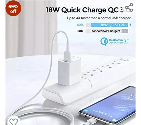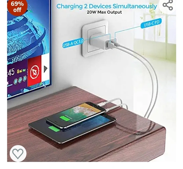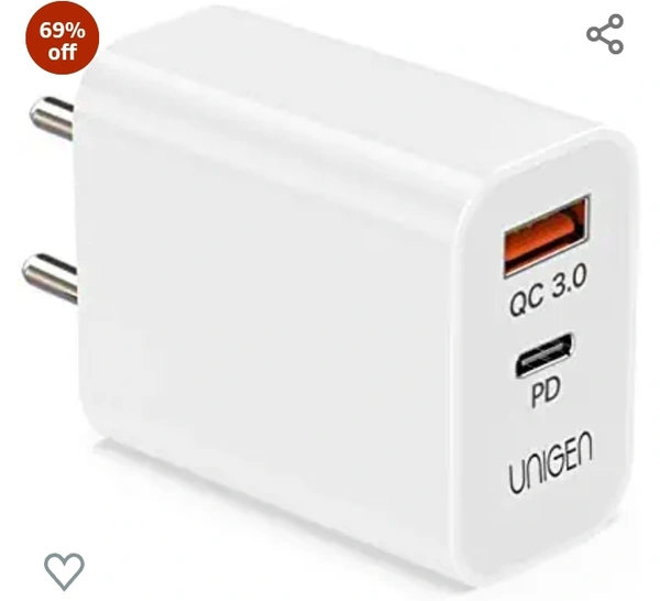 UNIGEN 20W Dual Port USB & Type C PD Fast Charger Adapter | USB 18W QC 3.0 Block for iPhone 13/12/11Pro/Pro Max/Mini, Samsung Galaxy/Note, Pixel (White)69%off69%off