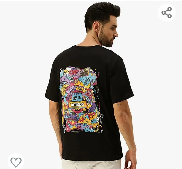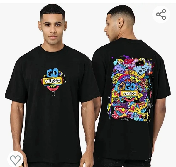 Veirdo Drop Shoulder Tshirt for Men, Over Size T Shirt for Man, Doodle Printed Half Sleeves Cotton Oversized T Shirts for Men & Boys, Cool Doodle Back Printed T Shirts for Men